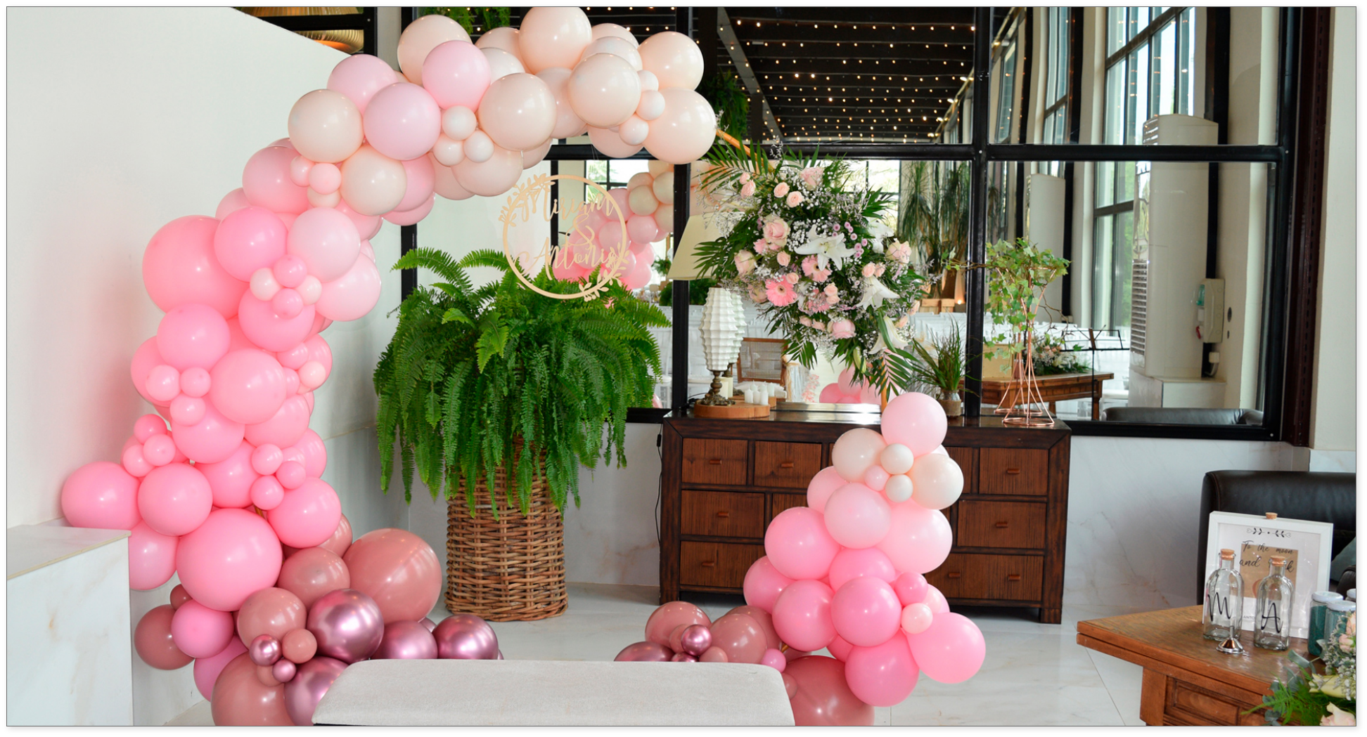 La guirnalda es uno de los principales elementos usados en las decoraciones con globos, logrando un gran impacto visual que deleitará a tus invitados.